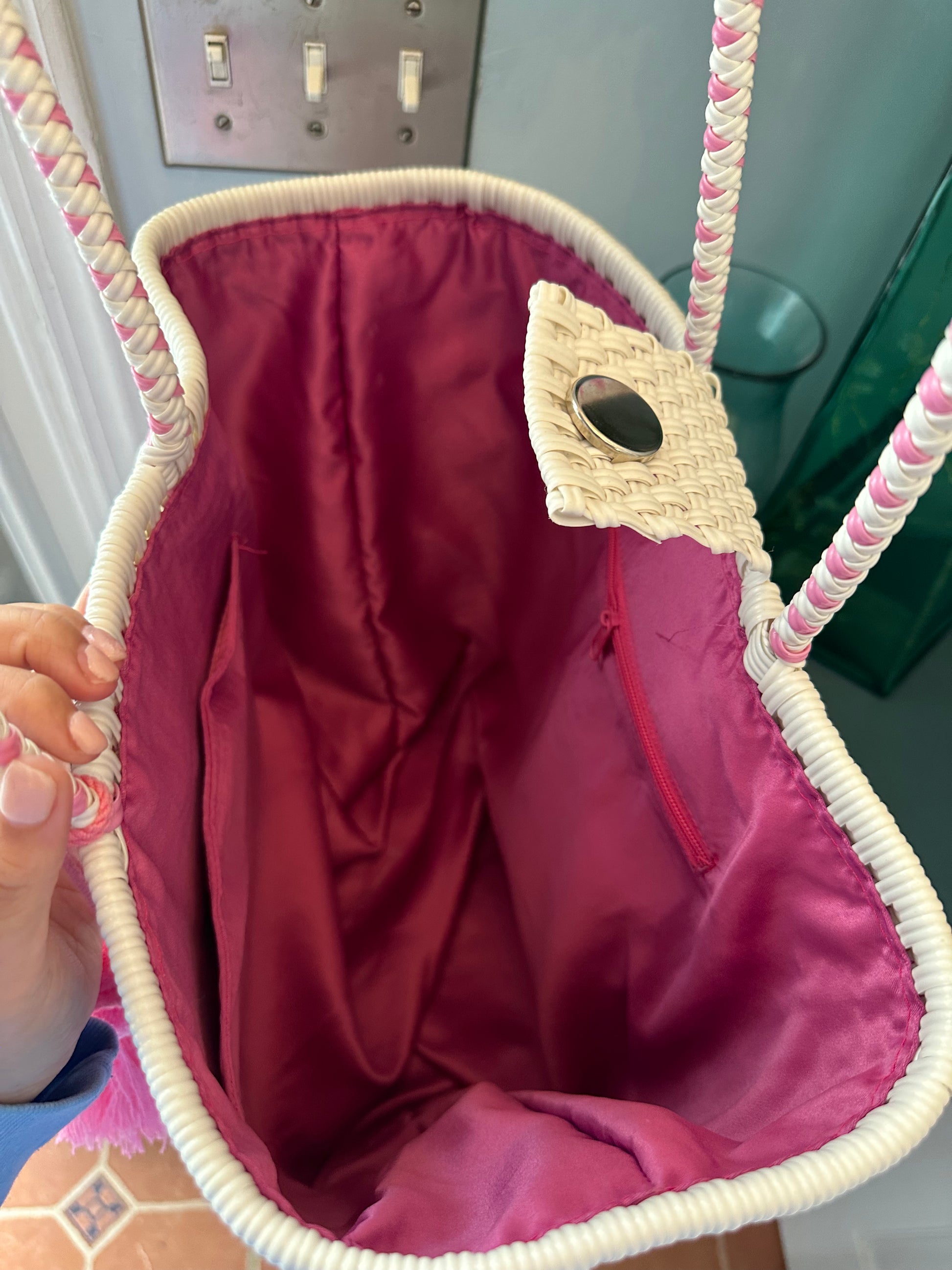 Unlike traditional open-weave totes, this design features a smooth silk fabric lining that adds structure, protects your belongings, and creates a more refined interior finish.